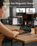 Quick-Set Magnetic Stand: Ultra-strong magnets seamlessly combine case and tablet to let you easily open the stand to the perfect angle for typing or browsing