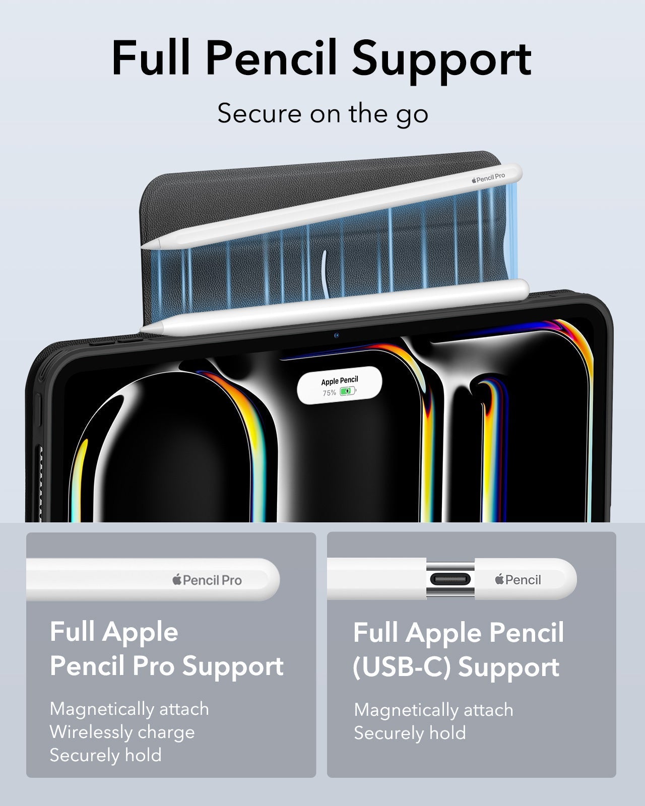Oui, la coque est dotée d’une rainure encastrée qui permet une fixation magnétique transparente du Pencil, un chargement sans fil et un couplage.Elle dispose également d’un fermoir magnétique qui maintient votre crayon bien en place et votre coque fermée en toute sécurité.