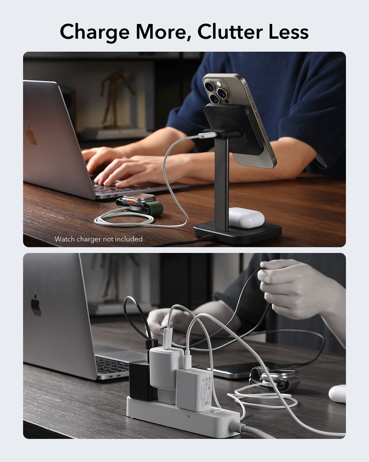 2-in-1: Organize your space with charging for your iPhone and AirPods,You can purchase an officially certified watch module to use with the charging