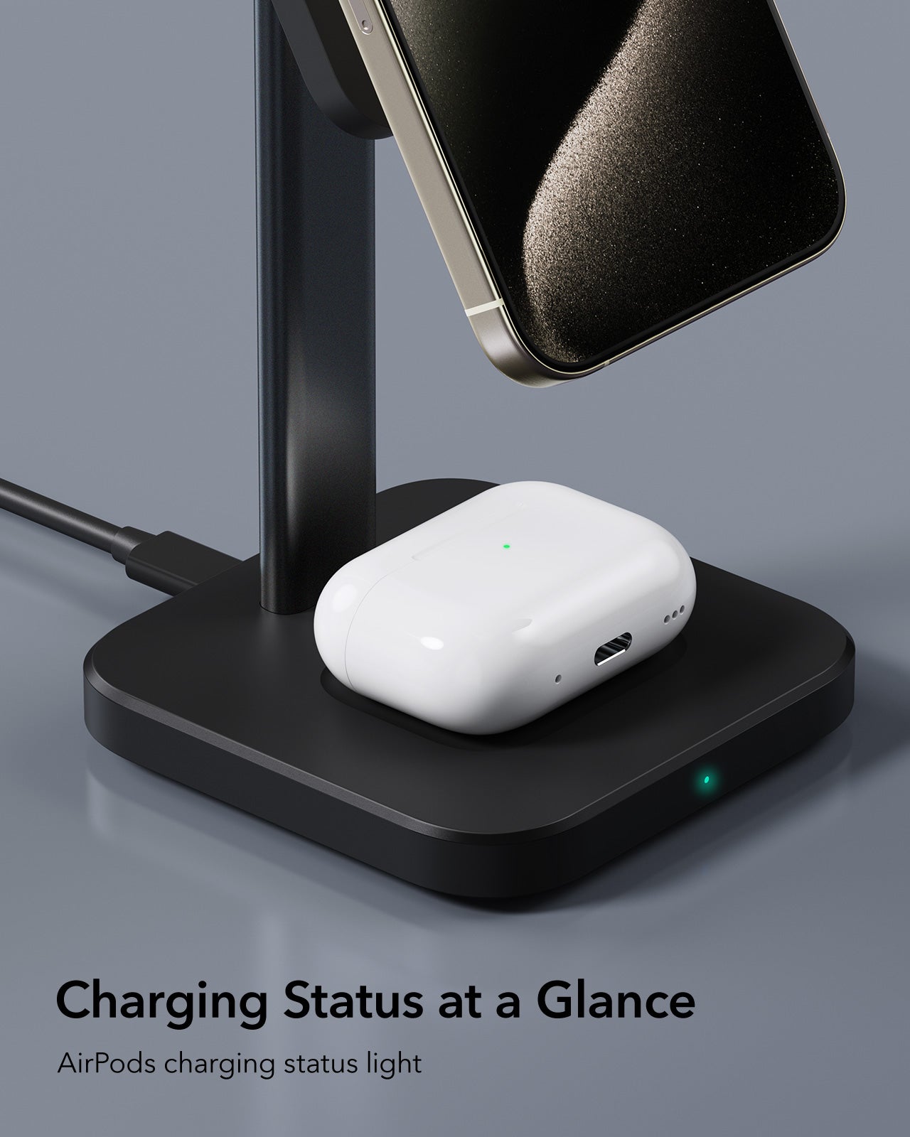 1,000 g of magnetic holding force keeps your phone powerfully in place during charging as built-in magnets AirPods charging pad ensure instant, secure alignment