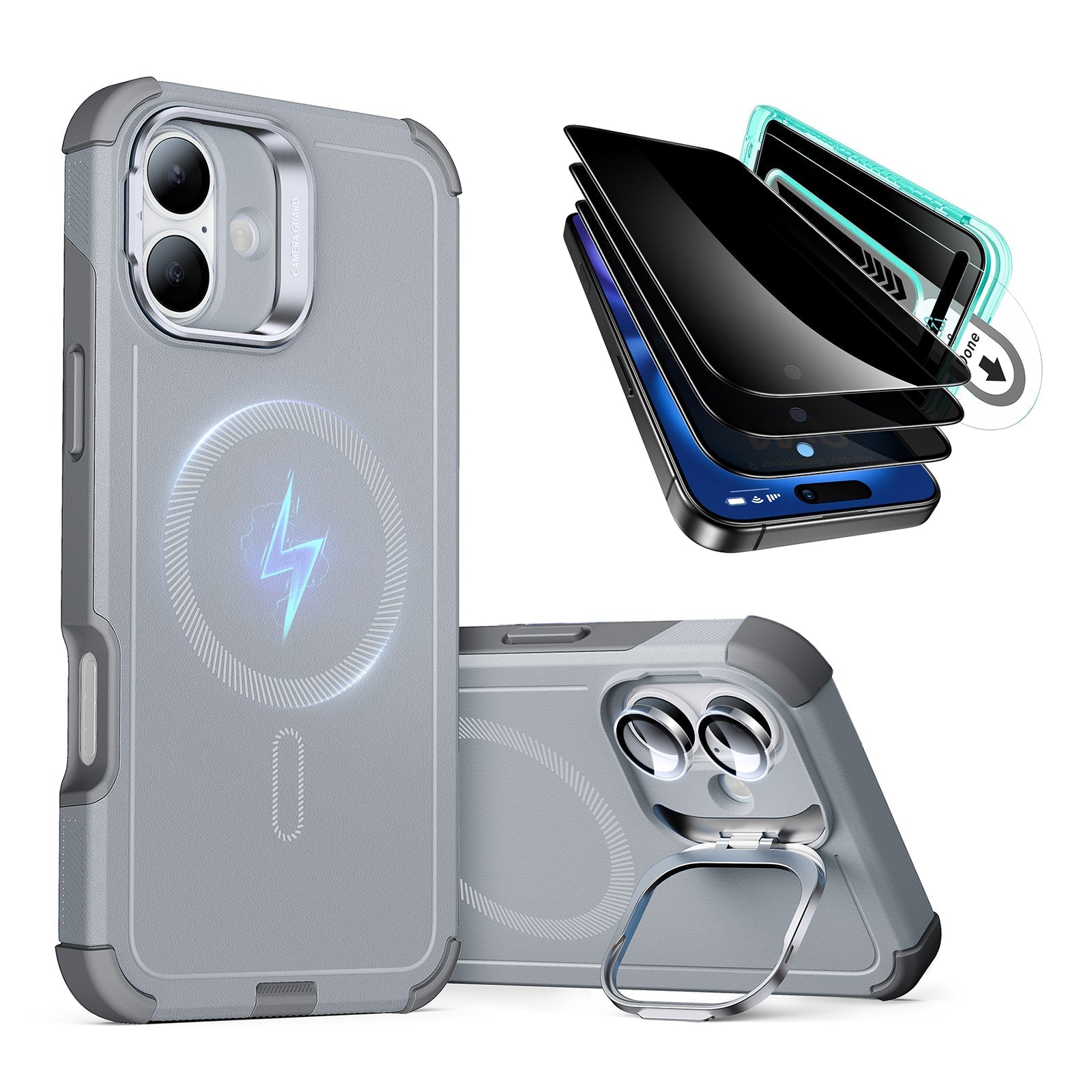 iPhone 16 Plus Rugged MagSafe Case with Privacy Screen Protector Grey