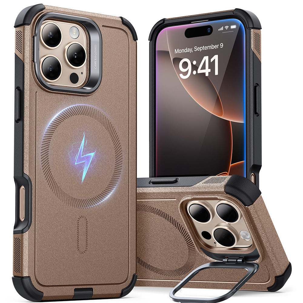 iPhone 16 Pro Cyber Tough Case with Stash Stand (HaloLock) - Gold
